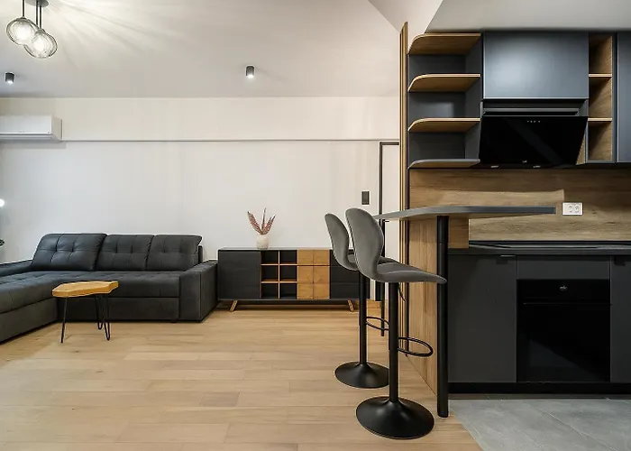 Acestea au o bucătărie utilată cu mașină de spălat vase și un cuptor. Cea mai apropiată stație de metrou este Orizont, aflată la 10 minute de mers pe jos.